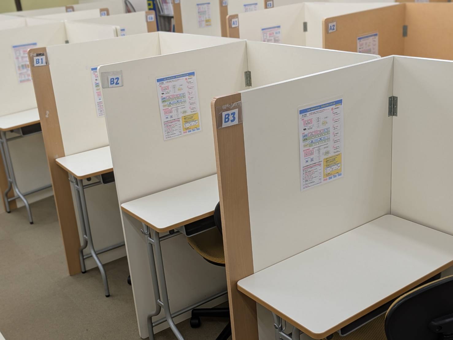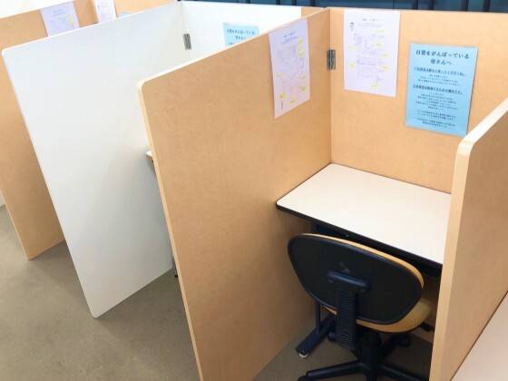 自習室が部屋として区切られていないため、小学生などが騒いでいたり、授業の声が聞こえてくるので集中しづらいときがある。