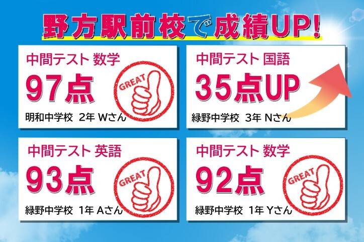 中1の時は、志望校の偏差値までいっていなかったが、先生たちのアドバイスや教え方で成績を上げる事かできた
