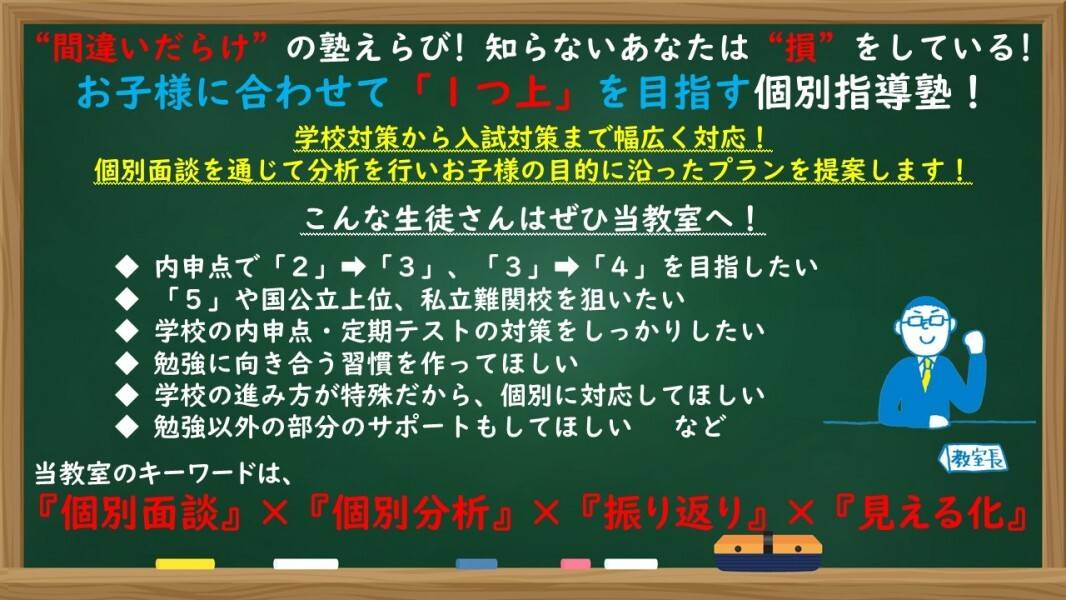 成績アップはやり方しだい!ワンランク上のめんどうみ!