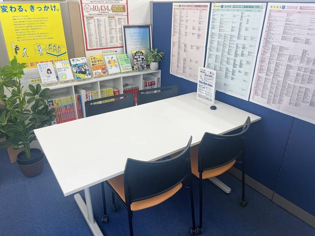 ビルの1フロアですので、広さがもう少しあると良いかなと思いました。面談する時は他の生徒にも聞こえていたと思うので別フロアもしくは会議室のようなところがあるといいなと思いました。