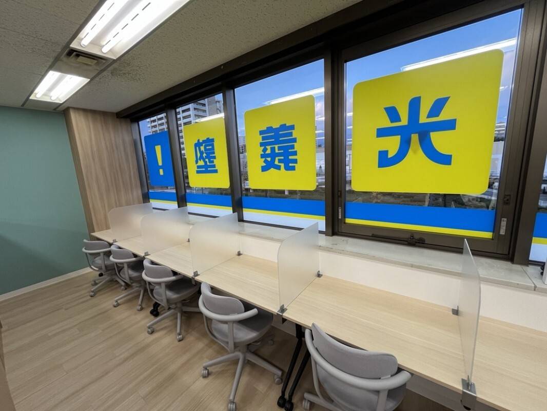 駅に近くて便利。周りは駅前であるため、飲食店などが並んでいて昼休憩もできる。学習塾が多く、少しうるさい時もある