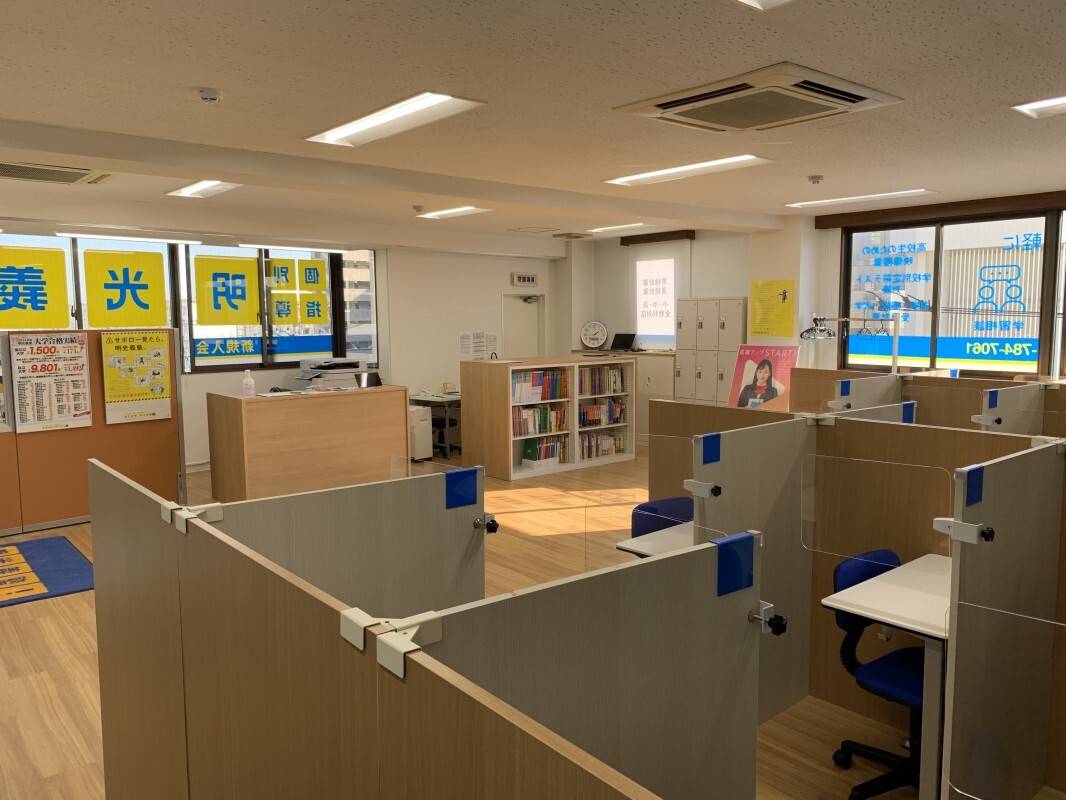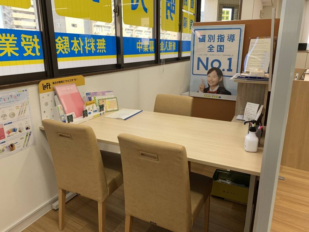 家から近く徒歩5分以内で行けるのでとても便利。学校からの帰り道にあるので学校帰りに自習室にも通えると思ってこの立地の塾を選んだ。大通り沿いの建物なので夜も明かるいし人通りも多いほうなところが安心。