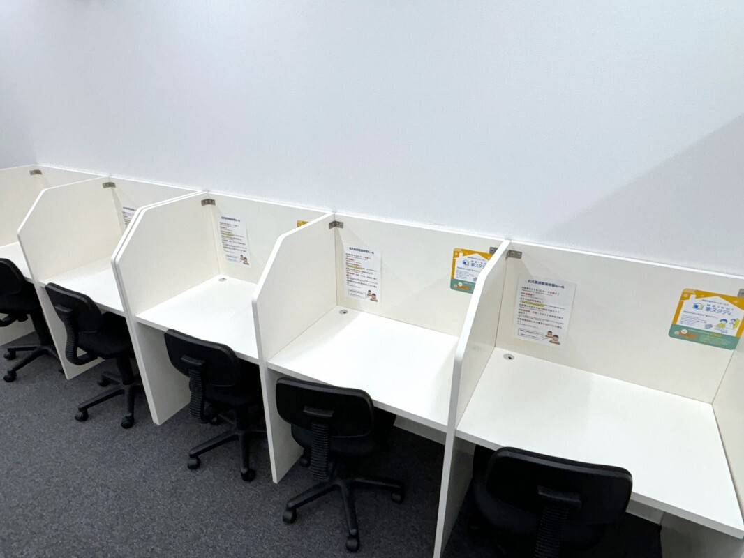 室内は明るくきれいなので勉強しやすい環境だと思います。 隣の席との間には衝立もあるので集中しやすそうです。