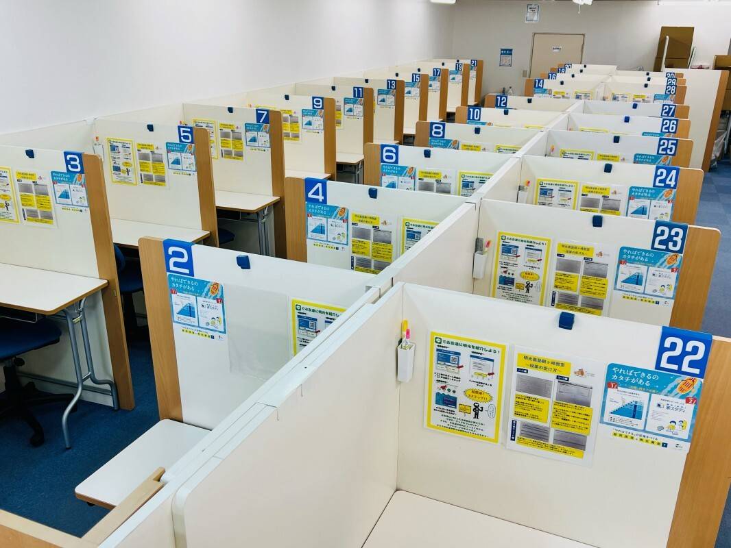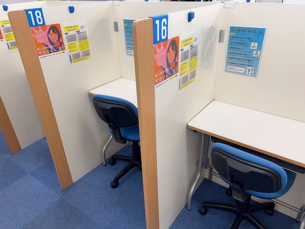 自習室もありすごく勉強に集中できる環境が整っています。さらに、生徒さんの質も良く、自習スペースでは真面目に話さず勉強をしている方がほとんどです。