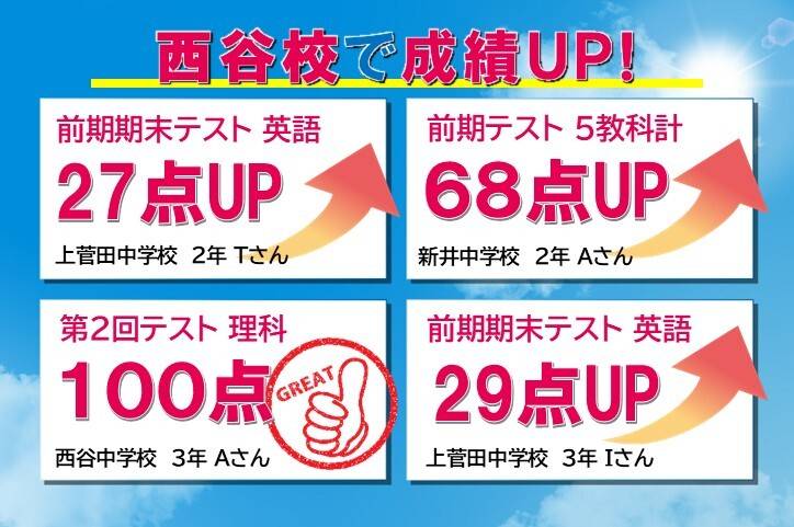 僕は、土曜日週一回の授業ですが、学校の授業から程よく予習ができ、復習ができるいい感じの進み方です。テスト前になると土曜日なので範囲もだいたい把握した状態で望めます。