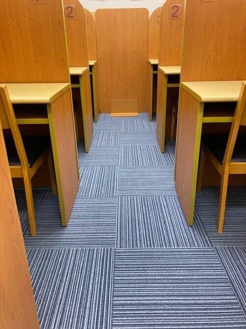 室内は明るくきれいなので勉強しやすい環境だと思います。 隣の席との間には衝立もあるので集中しやすそうです。