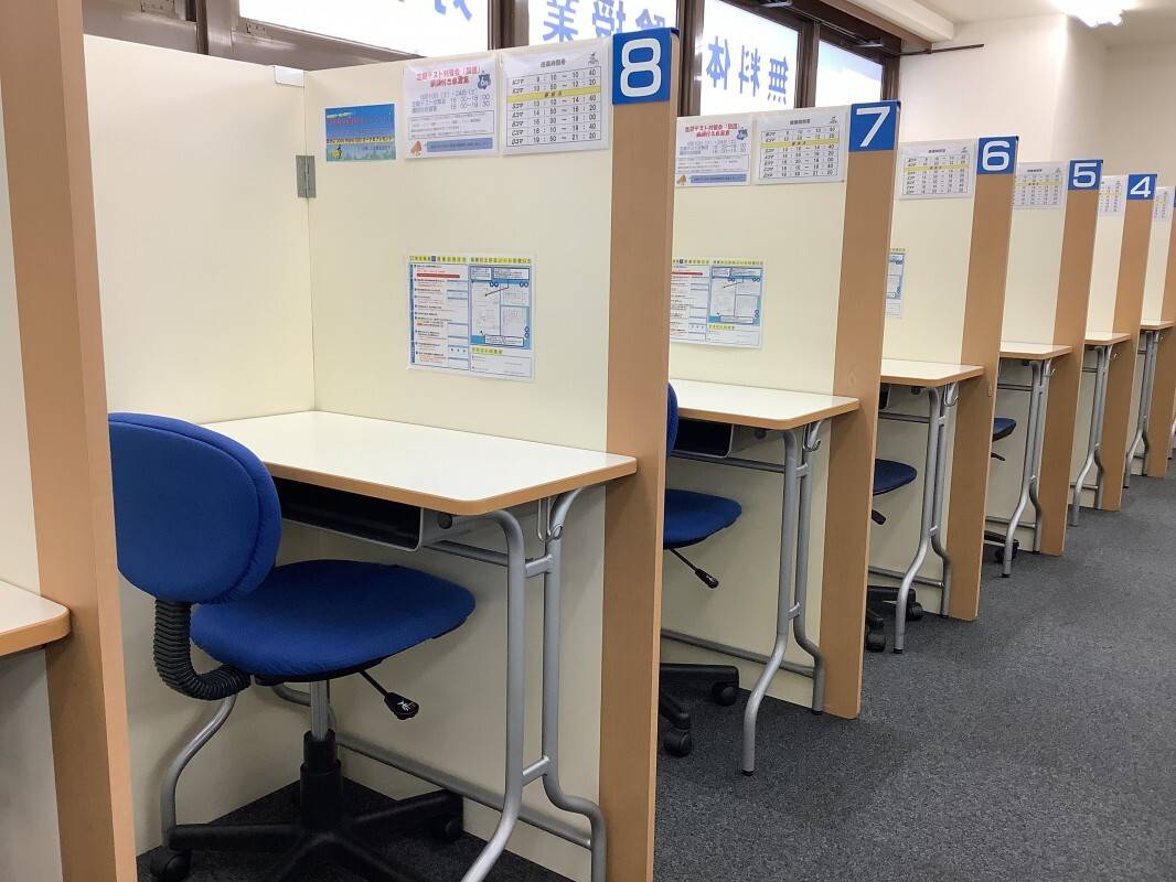 自習室もありすごく勉強に集中できる環境が整っています。さらに、生徒さんの質も良く、自習スペースでは真面目に話さず勉強をしている方がほとんどです。