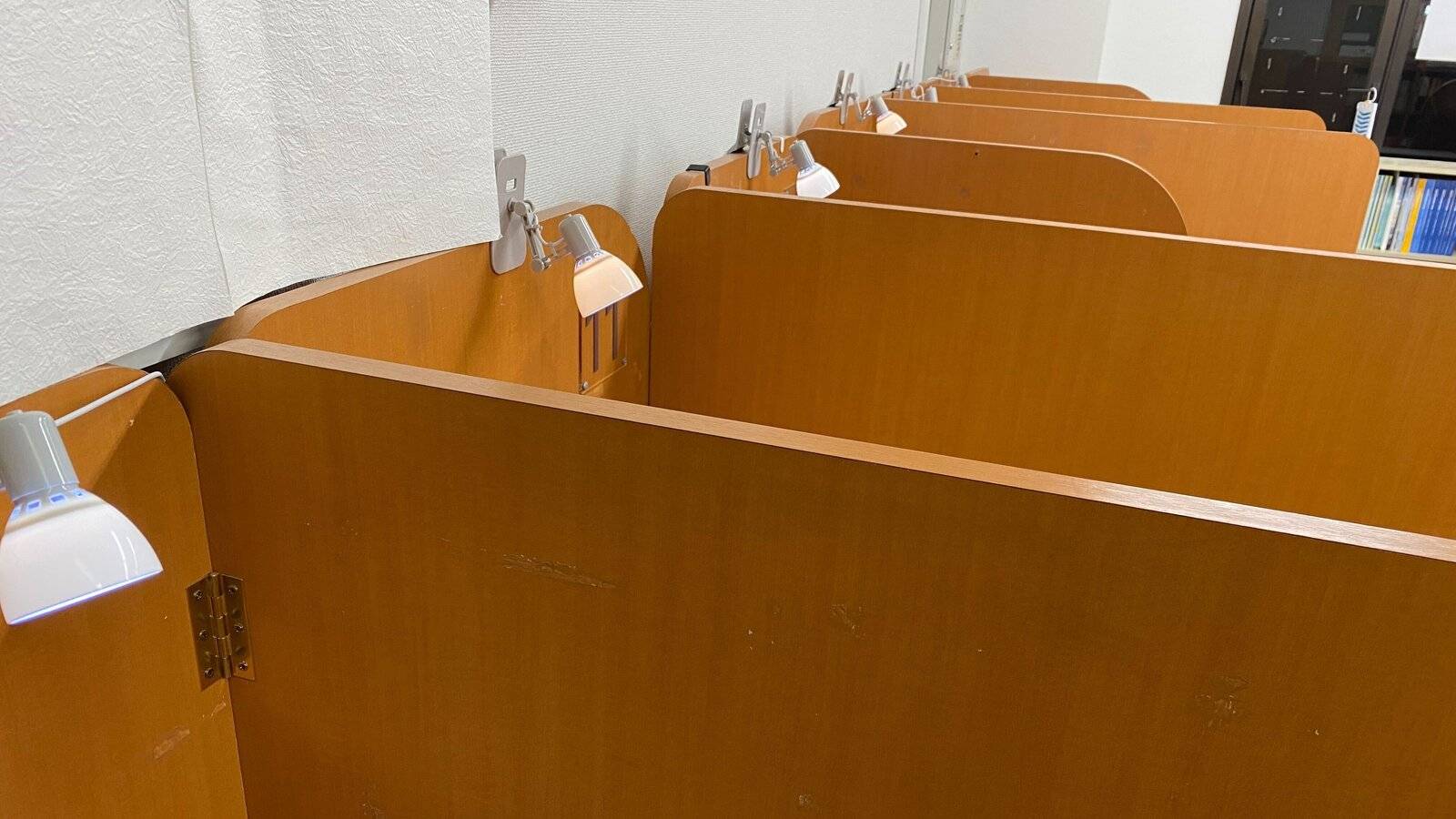 仕切りで区切られているので勉強しやすい。自習スペースもしっかり確保して勉強に集中できます