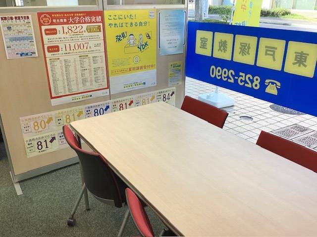 家から近く徒歩5分以内で行けるのでとても便利。学校からの帰り道にあるので学校帰りに自習室にも通えると思ってこの立地の塾を選んだ。大通り沿いの建物なので夜も明かるいし人通りも多いほうなところが安心。