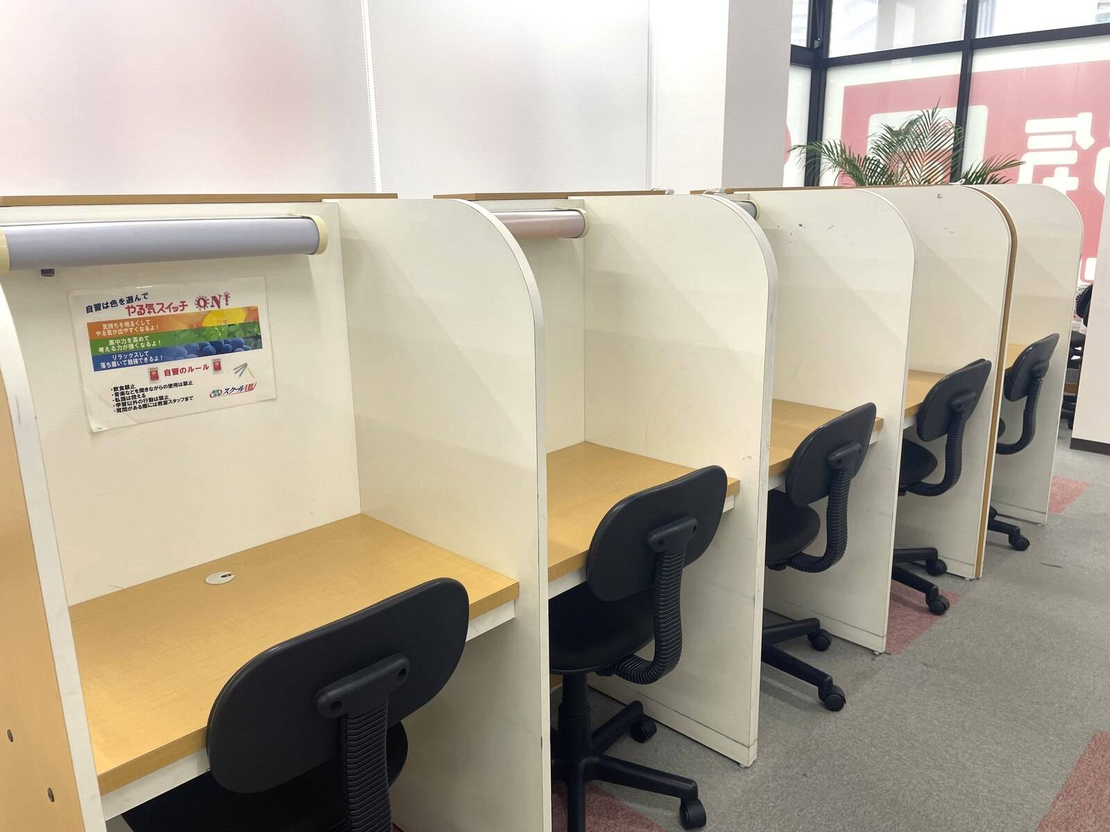 自習室もありすごく勉強に集中できる環境が整っています。さらに、生徒さんの質も良く、自習スペースでは真面目に話さず勉強をしている方がほとんどです。