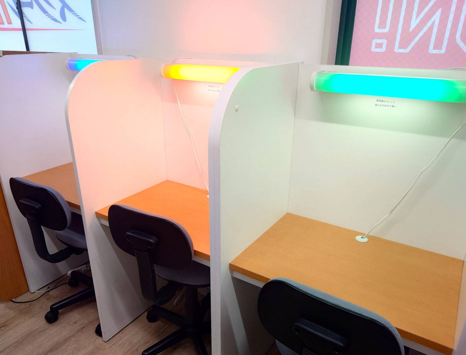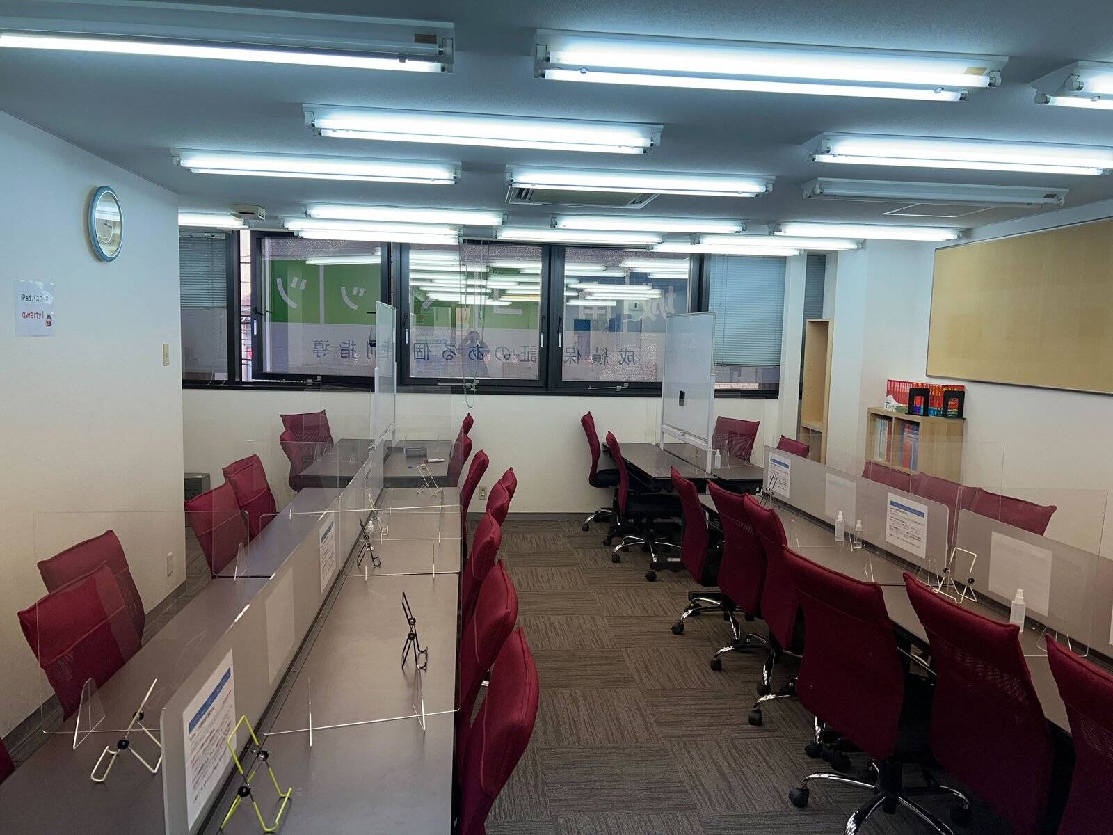 主に白を基調としていて洗練とされていて勉強に集中しやすい環境であった。自習室と授業の部屋をもう少しちゃんと正確に分けてほしかった。より集中するためにも。
