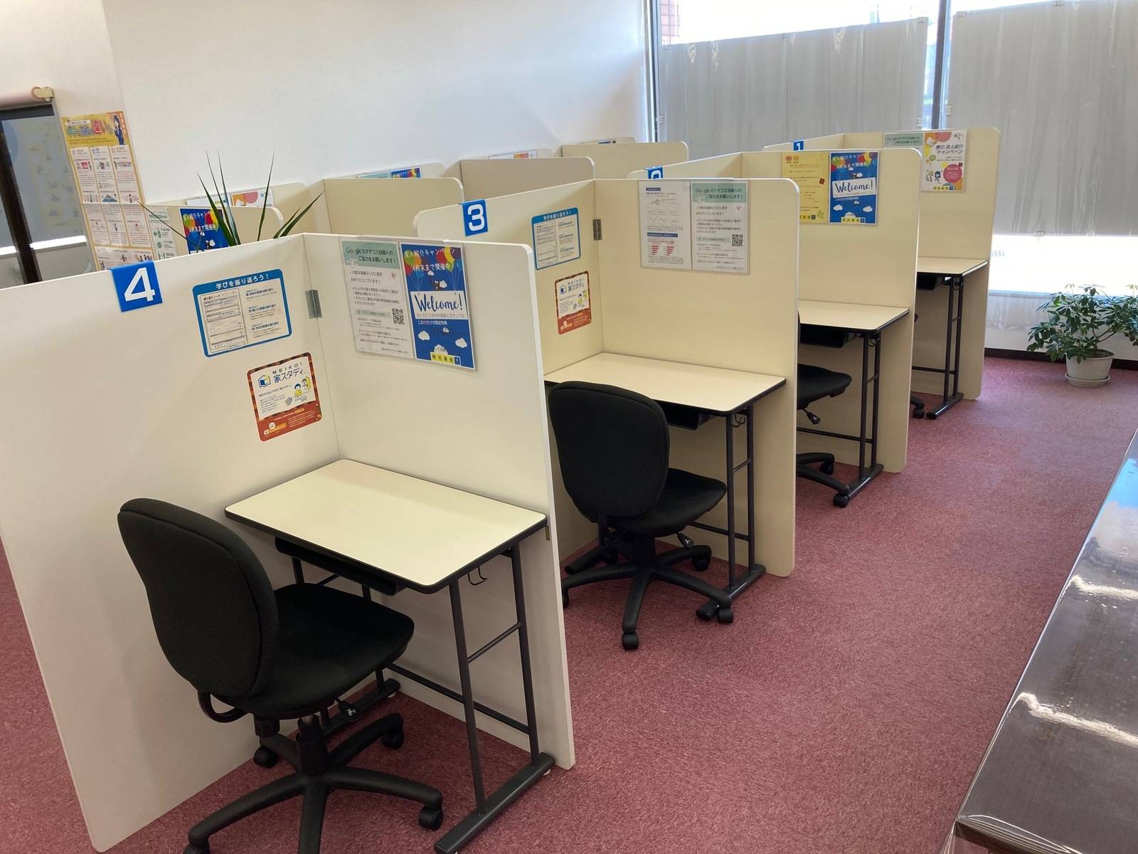 キレイに室内はなっている環境だと思います。個別指導しやすいように、仕切りでなっており、自習席もありいいと思いますが、大人数の時には周囲の声で集中に気になる子は気になるんだろうなとは少し思うかなと、