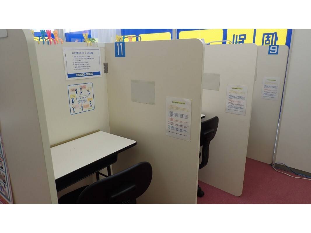 設備は普通に机、椅子、すぐ隣にみんないるけど1人1人ついたてがあり分かれている。必要な物はあるからいいと思う