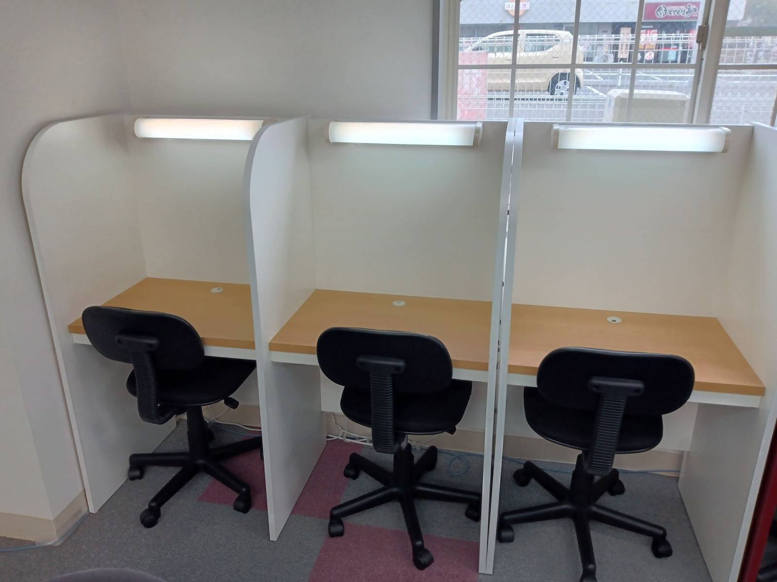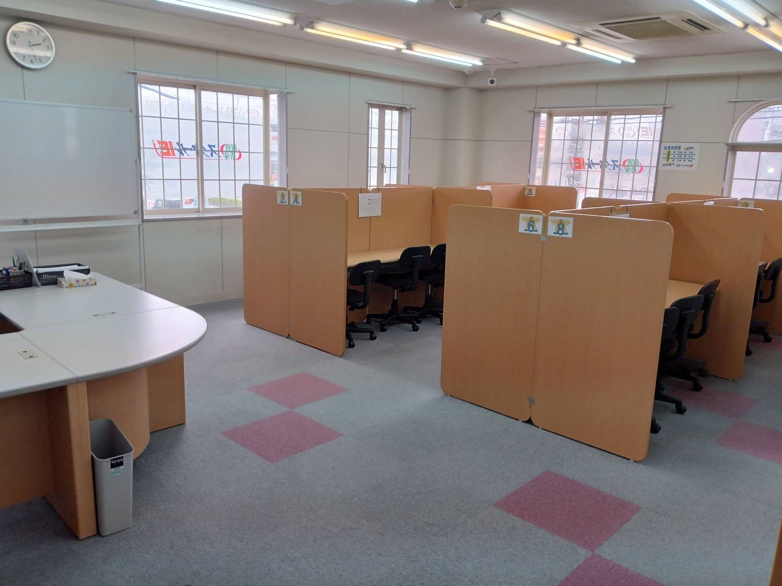 ちょっと狭い感じがします。ビル自体は少し古いですが、最近一部リフォームして綺麗になってます。他の塾がいくつか入っているビルなので安心です。