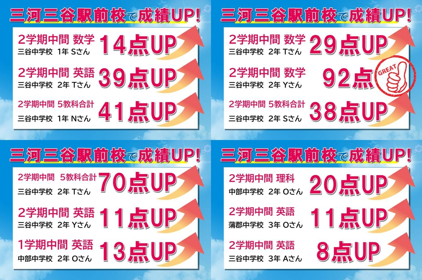 自分にとって苦手なところがたくさんあったけど、テストや期末に出てくる内容をしっかりとお教えてくれて、自分のレベルが上がリマした!