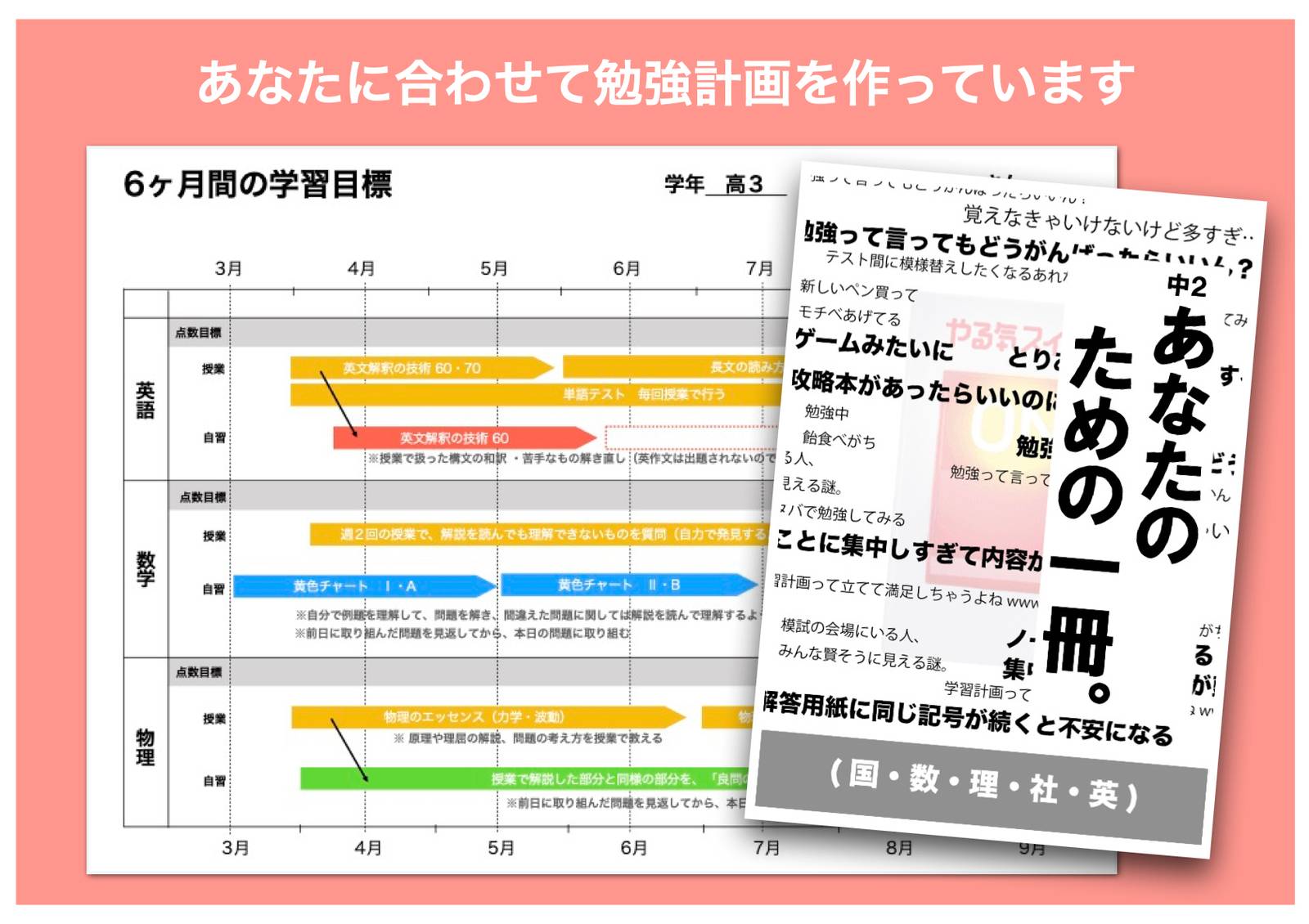 お子さまの学力や目標に合わせて、オーダーメイドのカリキュラムを作成します。