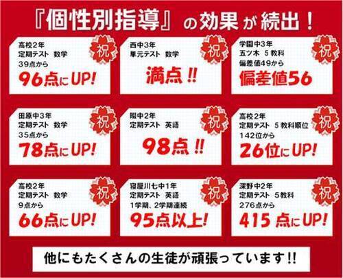 先生が生徒に寄り添ってくれる。 細かいところでも気付いて色々伸ばしてくれる。子どもも嫌がらず進んで塾に行き勉強するようになった