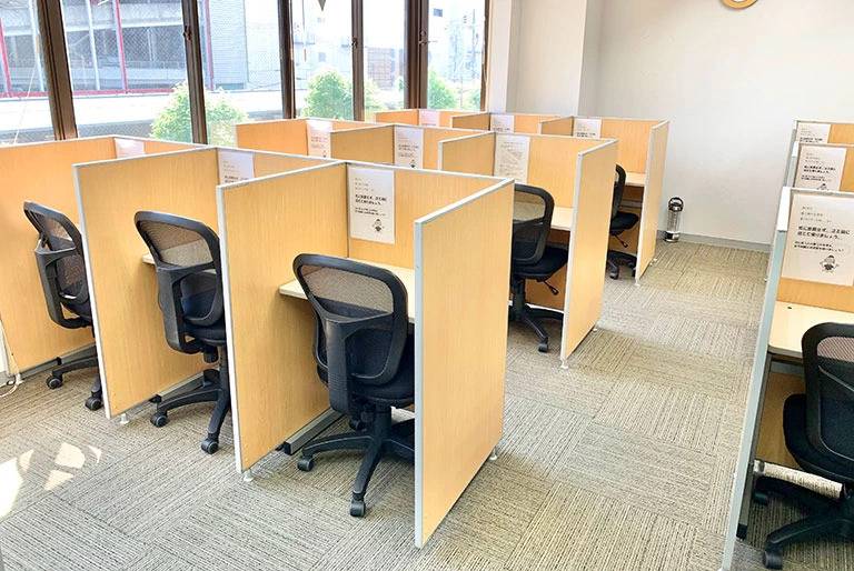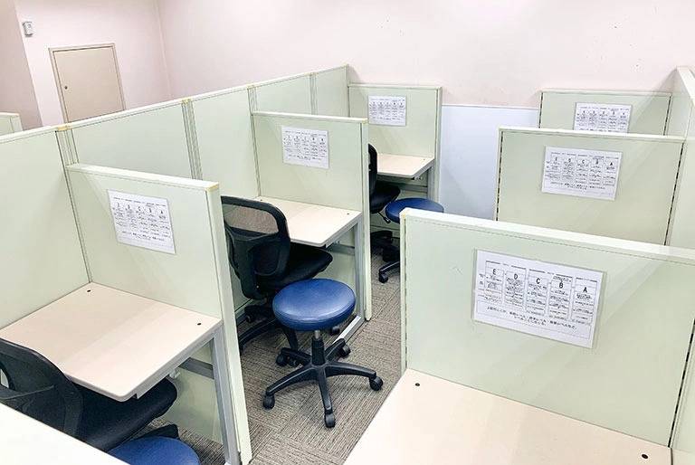 自習室がある。教室は仕切りがあって清掃もしっかりされている。トイレも洋式で掃除が行き届いている。