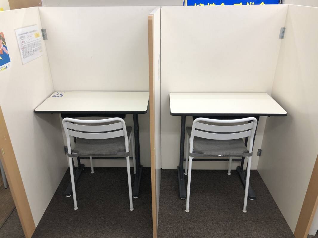 イオンの中にあって綺麗ですが、トイレはイオンのトイレを使用するので距離がある。 横の席と仕切りがあるので集中できる。