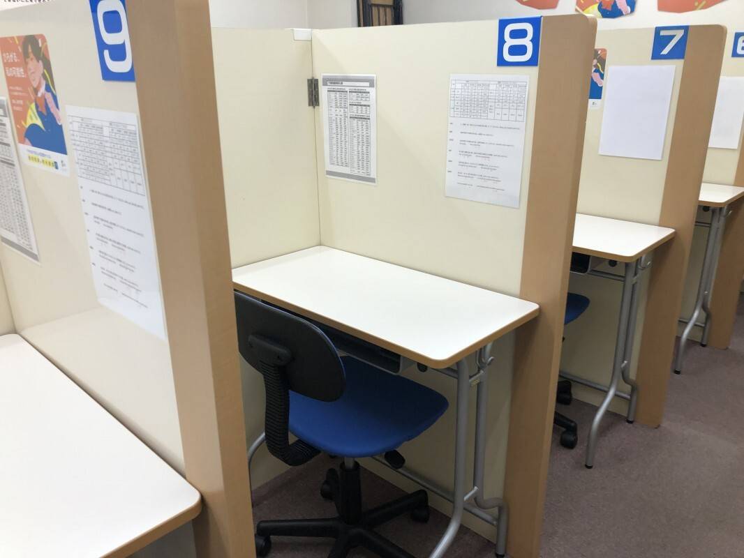 夏の場合は自習室に、各テーブルにハンディーファンを設置しているので、涼しく過ごせています。