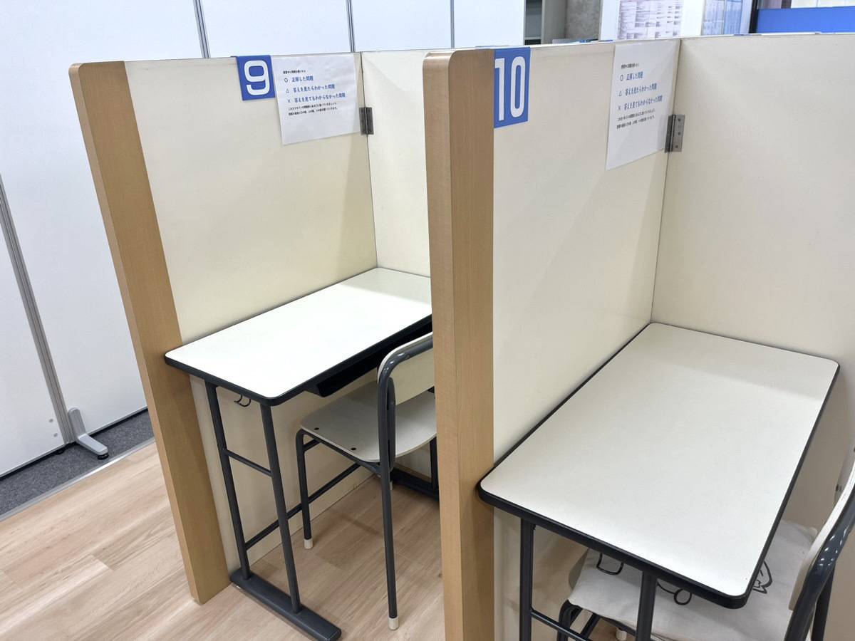 綺麗な教室で、清潔感もあり良いと思います。集中しやすいように区切られており、一人一人にホワイトボードがついているのも良いです。