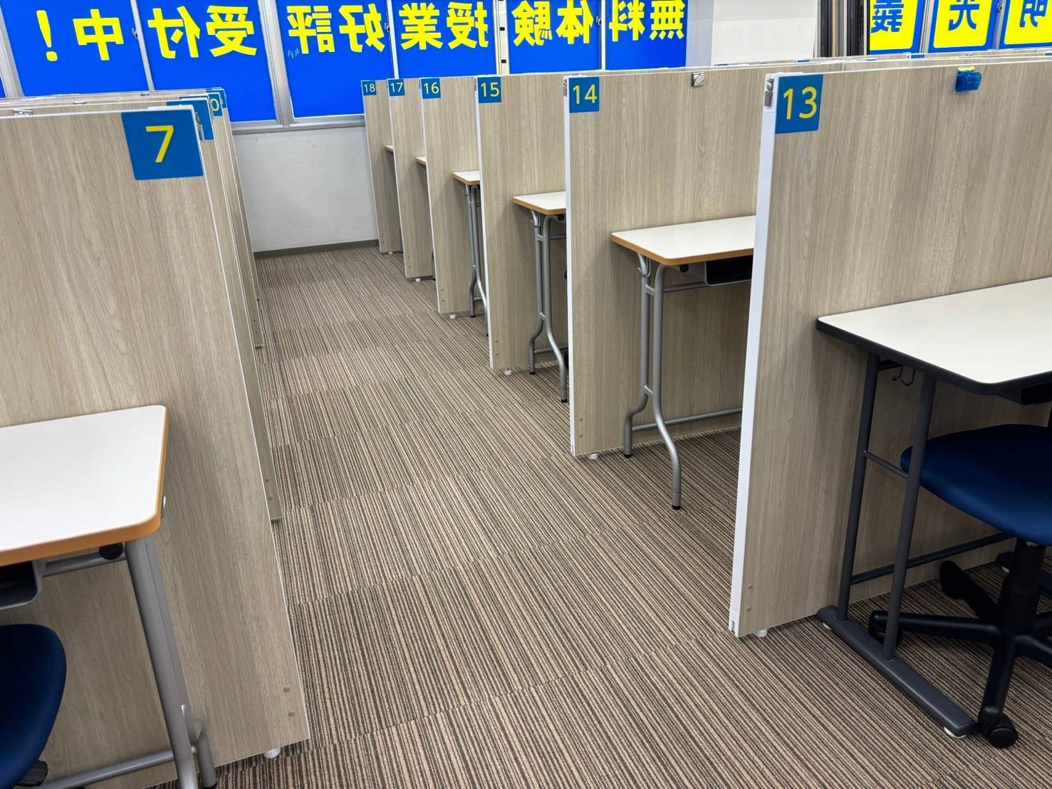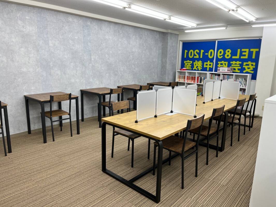 塾に入った時間と出た時間を知らせてくれて安心。 冷暖房完備。 ガラス張りで、密室にならず安全。