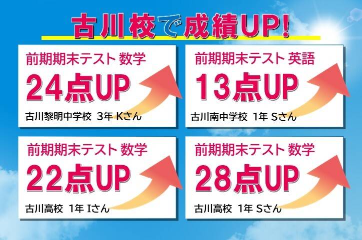 まずは成績アップが喜んでいる。授業内容も以前の塾よりもわかりやすく、ついて行けると言っている。
