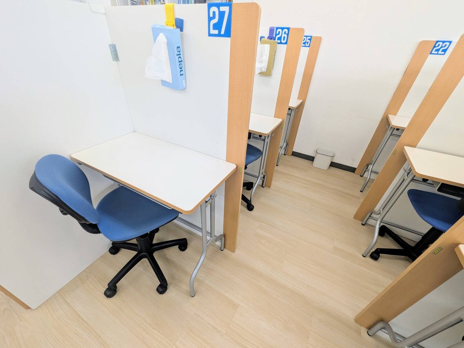 一人ずつパーテーションで区切られているので、気が散らなくて良いと本人は言っている。割と綺麗なので安心して通わせることができる。