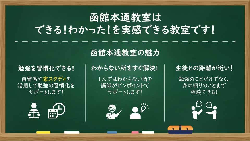 ・偏差値に関係なく、勉強が好きな子、嫌いな子、どの子どもたちにも一人一人向きうこと。 ・今やるべきこと(勉強)のスケジュール管理が身につき、一つずつの積み重ねが大切なことが学べた。