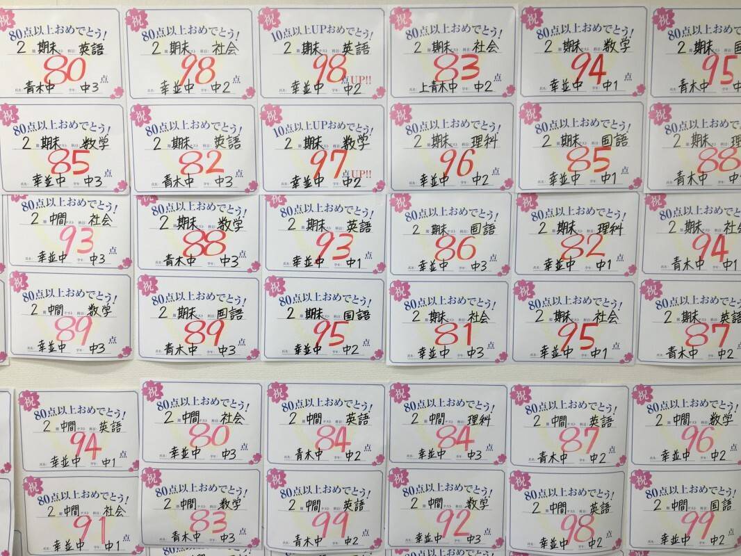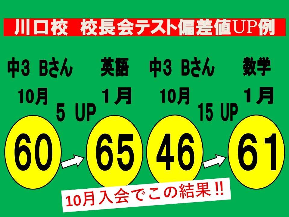 定期テスト対策および高校受験合格の為に、入校しましたが定期テストに関しては通い始めてすぐ点数が上がり通塾の月日が経つほど順調に点数が上がっていった。 高校受験に関しては、元々判定がひくかったのにも関わらず無事合格することが出来た為。