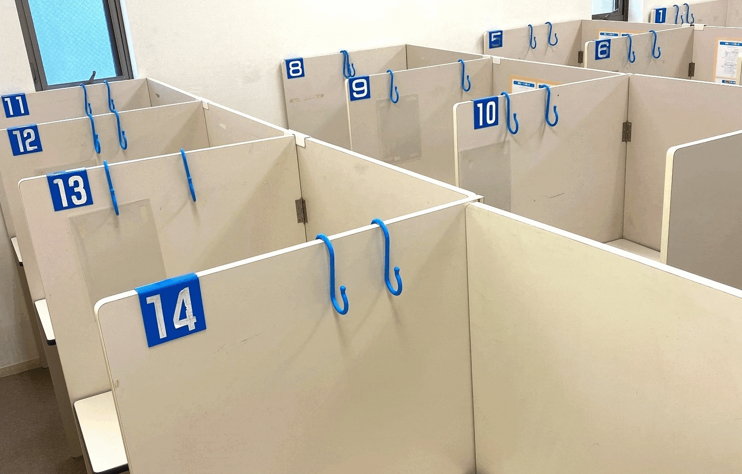 夜遅い時間は受験生や高校生が多く比較的静かなので集中してできる。 自習室は一つ一つ区切られているので集中出来る。
