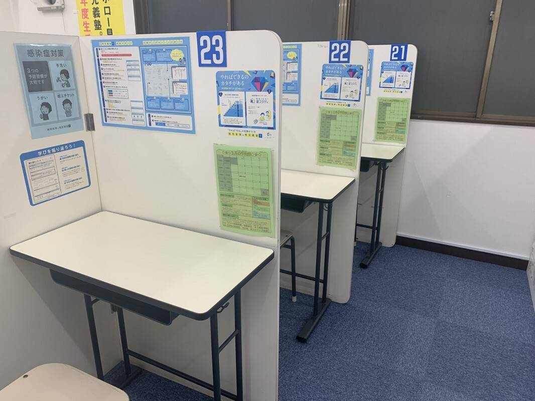 自習室も使えて、前後の時間を有効に使えるのが良い。 授業のない日でも利用可能。 授業スタイルが1対2で、少々狭く感じるようなのは仕方ないところかもしれない