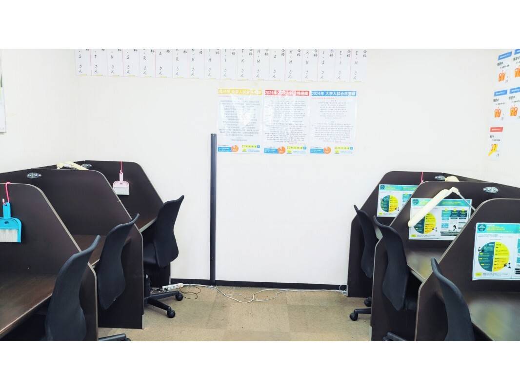 完全個別指導のため、衝立で作られた個人スペースでの学習となります。自習室は少し少なかったです