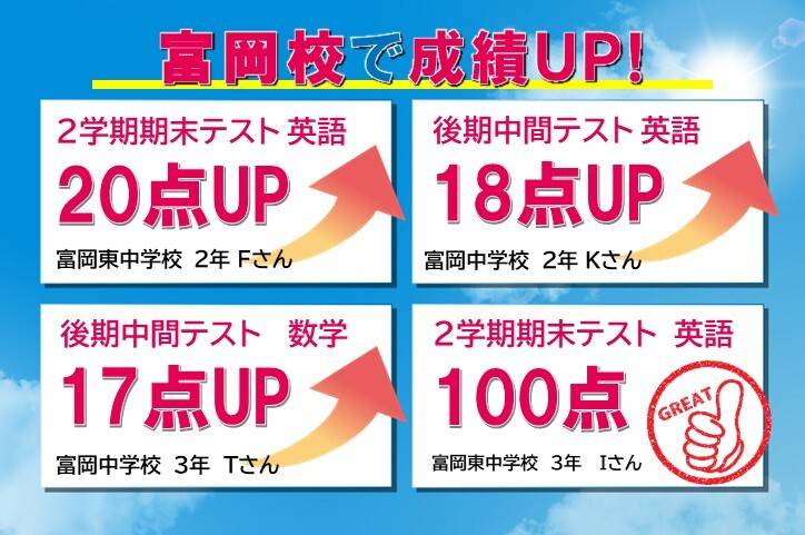 成績は十分向上した。定期テストの勉強のコツなども教えて貰えるので、勉強を教えてもらう以外にもプラスの要素が多かった。