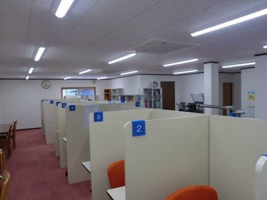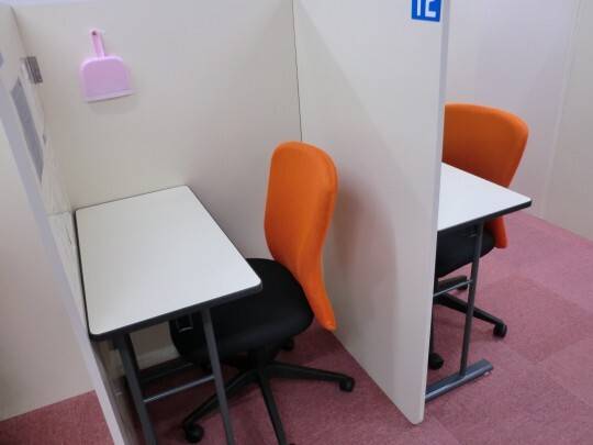 教室が狭い感じがしますが、間仕切りで仕切られているのでいいと思う。ただ、入り口から席が近いのが気になります。
