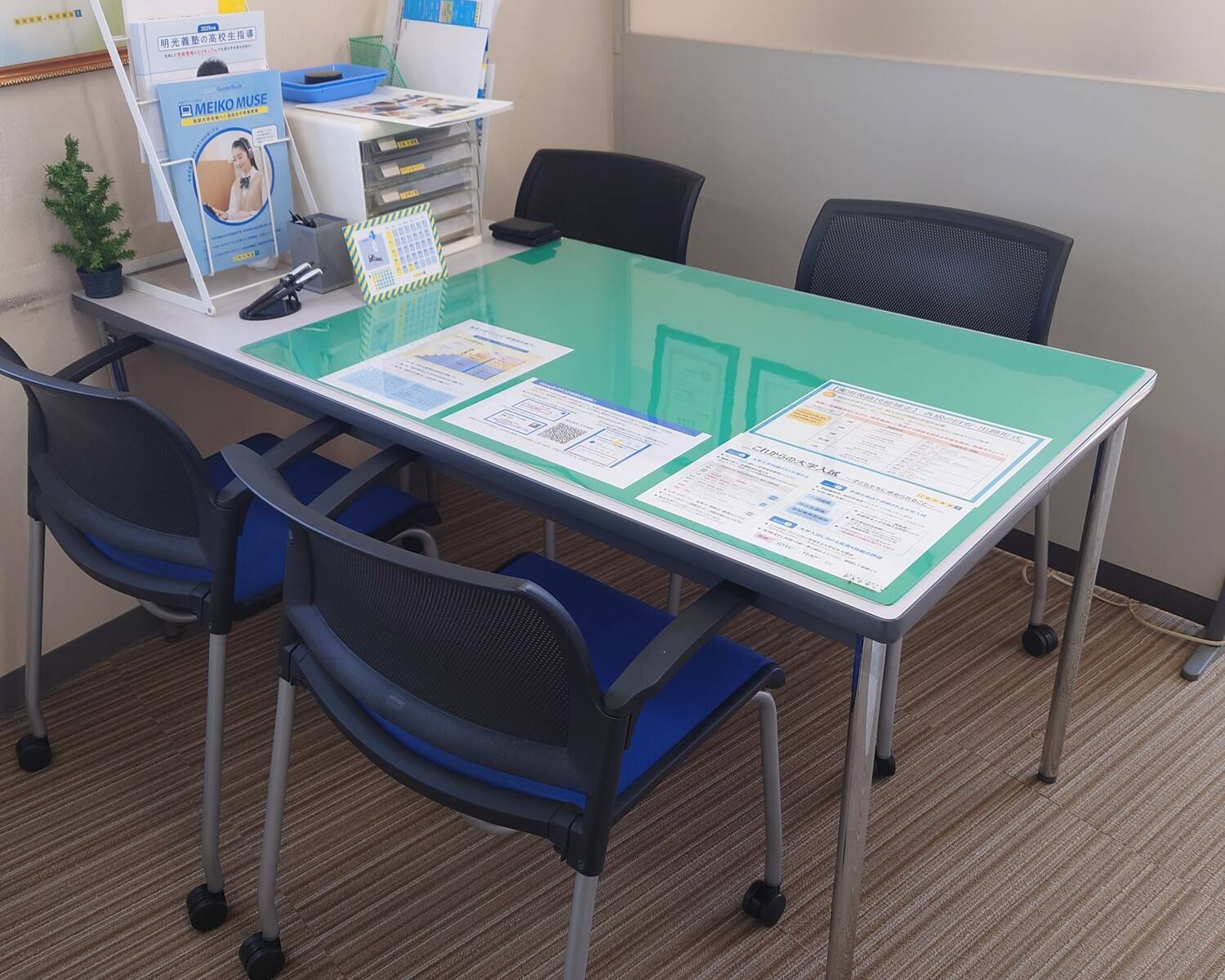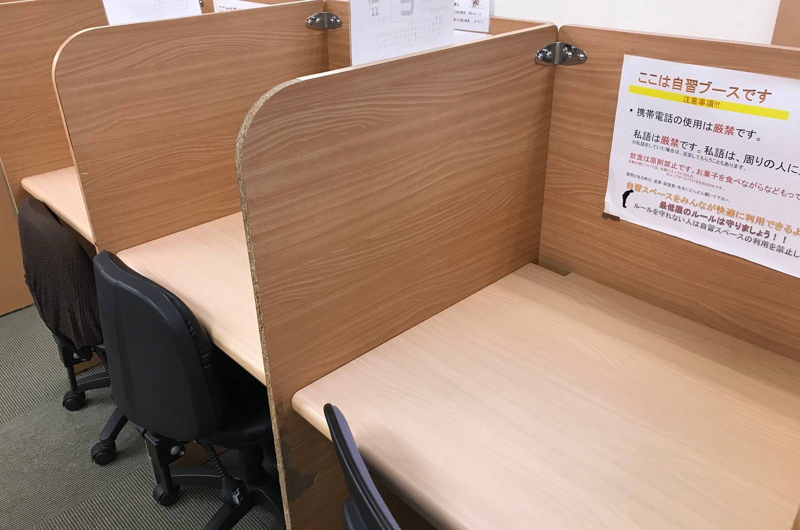 個別指導塾と言うだけあって、相談はできるけど集中もできる程よい距離に隣の子の机がある