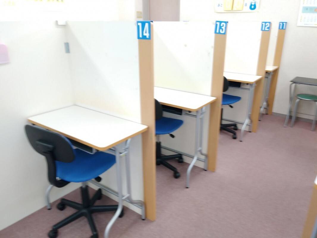 1対1か2対1の授業なので、教室が狭くても十分な広さはある。 隣の席との壁が低いので、声が丸聞こえで、静かに授業を受ける事は出来ない。