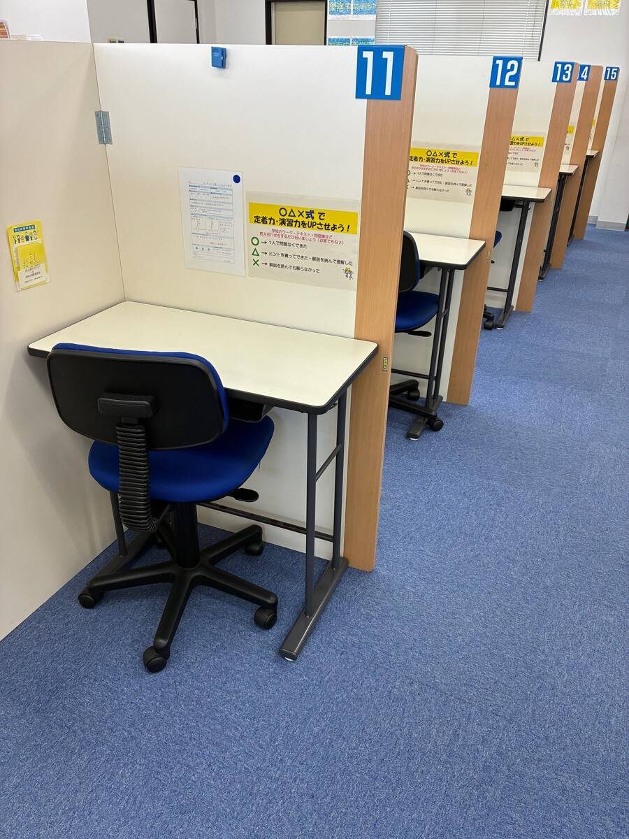個別なので先生がすぐそばで見ていてくれるので安心。分かりやすいと、子供も嫌がらず楽しそうに通ってる。 先生が学生なのか(?)、先生都合で教えてくれる人がいつも違うらしい。今の所支障ないように思うが、レベルが上がってくるとこの対応で大丈夫か少し不安も感じる。