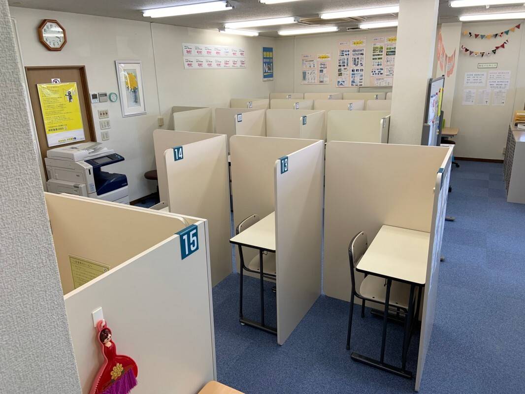 先生の雰囲気が良く変な壁が無く分からない所を正直に聞きやすい。直前の予定変更もすぐに対応してくれる。スタンプラリーがあるのでやる気を保てる。ただ、立地が駅前で飲み屋が近くに多く外の騒音が集中力の妨げになっている。