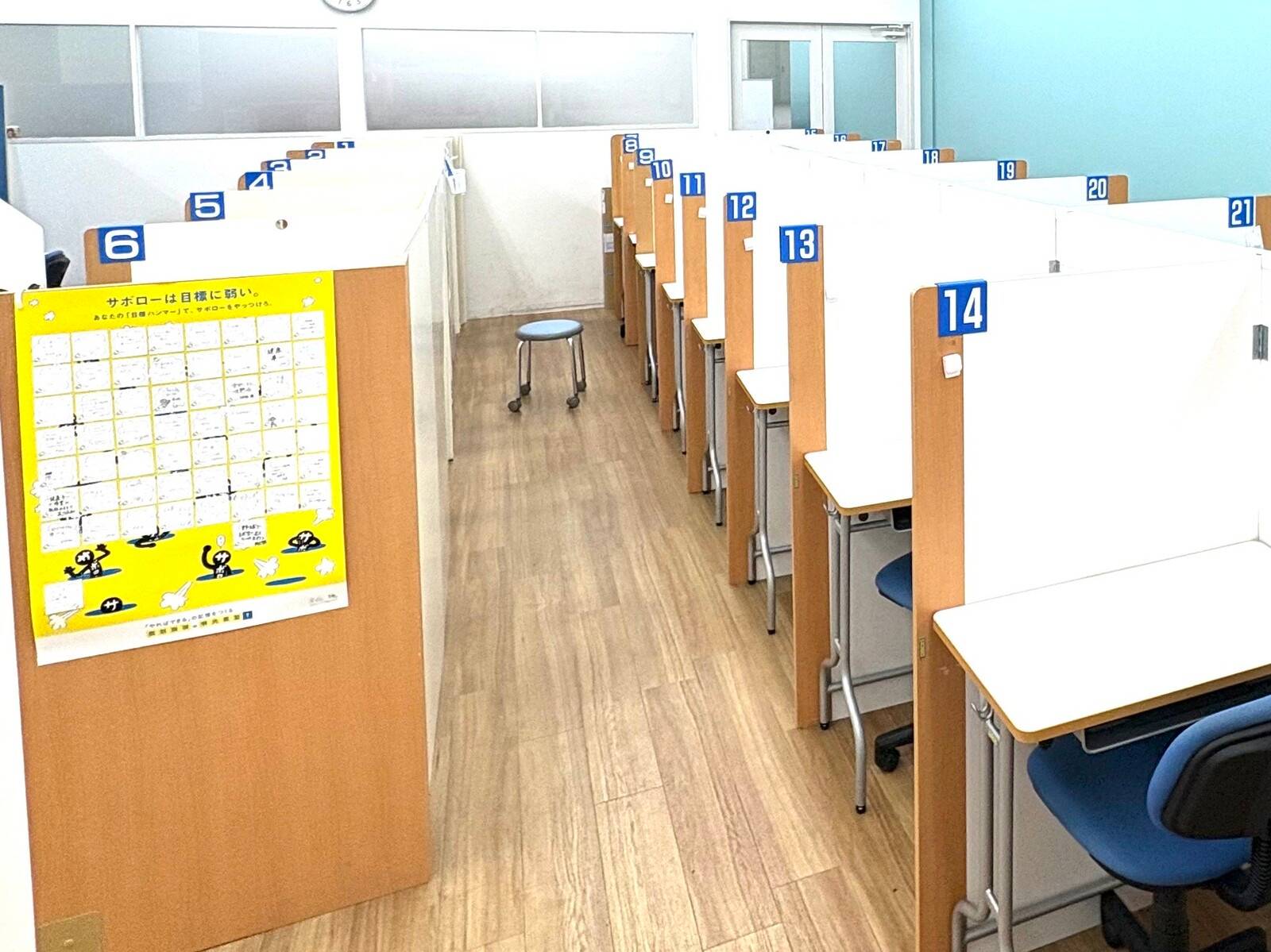 イオンの中にあって綺麗ですが、トイレはイオンのトイレを使用するので距離がある。 横の席と仕切りがあるので集中できる。