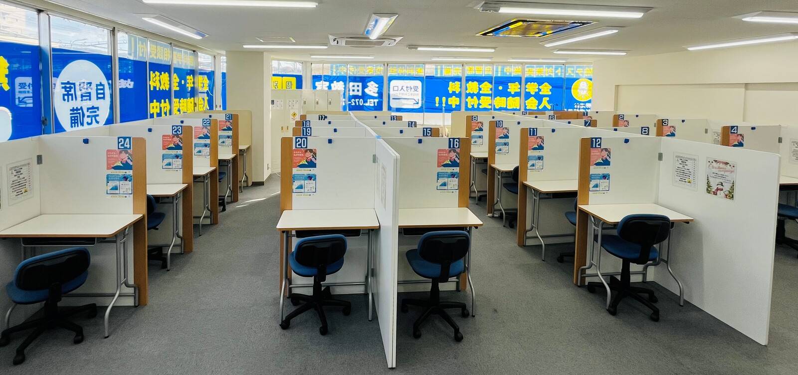 イオンの中にあって綺麗ですが、トイレはイオンのトイレを使用するので距離がある。 横の席と仕切りがあるので集中できる。