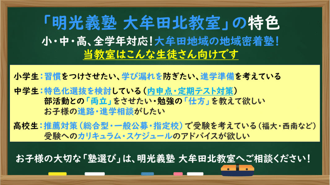 塾の場所が家からとても近くにあったので通塾環境としては申し分なくとてもよかったと思う。